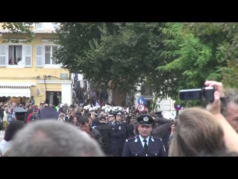 Υπό βροχή και με την εμφάνιση διμοιρίας των ΜΑΤ έγινε η Παρέλαση στην Κέρκυρα.Μετά την λήξη της παρέλασης είχαμε διαμαρτυρία από το ΕΠΑΜ υπό το βλέμμα των ΜΑΤ κοντά στην εξέδρα των επισήμων,χωρίς επεισόδια.[Σε όλα τα βίντεο:Eικόνα HD 1.080p.και ήχος Dolby Digital 5.1.Πατώντας το τετραγωνάκι δίπλα στο You Tube μπορείτε να το δείτε σε πλήρη οθόνη,ρυθμίζοντας στο πρώτο κουμπί την ανάλυση σε 1.080p. από 360p.που θα εμφανιστεί στην αρχή.]
