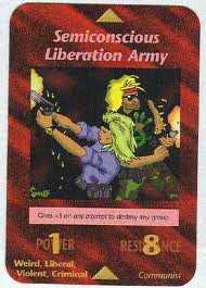 Επομένη κάρτα " Ήμι συνειδητός απελευθερωτικός στρατός" η "Ημι αναίσθητος απελευθερωτικός στρατός" Κάρτα πολύ παράξενη που ίσως μιλάει για κάποιο νέο κίνημα ανθρώπων με αφυπνισμένη συνείδηση που θα προσπαθήσει να δώσει την μάχη του (πράγμα που γίνετε σήμερα) . Η για κάποιο στρατό που θα είναι ήμι αναίσθητος ..δηλαδή σκληρός η προγραμματισμένος,,,,...ρομπότ (Αμερικάνικος στρατός?) Δεν μπορούμε να κρίνουμε την συσχέτιση της.