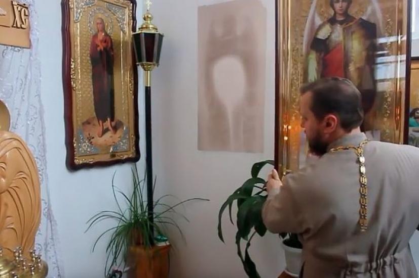 Το περίεργο φαινόμενο στον τοίχο πίσω από τις εικόνες είχε πρωτοεμφανιστεί πριν από ένα χρόνο χωρίς να είναι σαφές περί τίνος πρόκειται. Οι ειδικοί άρχισαν να ερευνούν τους τοίχους αλλά ουδείς εκ των ιερέων της ενορίας πήρε την πρωτοβουλία να μιλήσει για την θαυμαστή ανακάλυψη χωρίς την ευλογία του Μητροπολίτη Βλαδιμήρου της περιοχής του Ομσκ. Τώρα,ο πατέρας Αλέξανδρος αποκαλύπτει το θαύμα…
