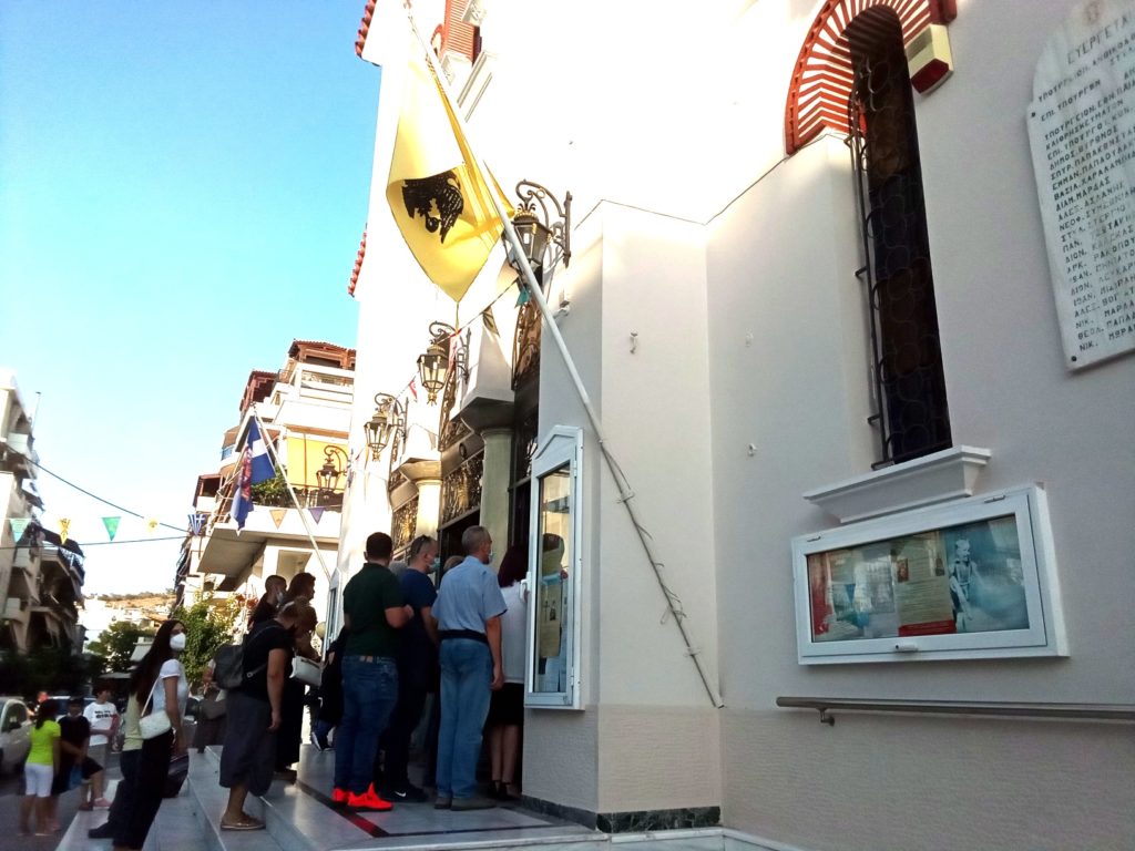 Πλήθος πιστών προσήλθαν το απόγευμα της Δευτέρας 20 Σεπτεμβρίου 2021 στο Ιερό Ευχέλαιο, στο τέλος του οποίου εμβαπτίσθηκαν Δάκρυα και Μύρο από την Ιερά Εικόνα της Παναγίας και διανεμήθηκαν στους πιστούς.