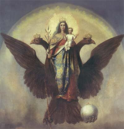 Έχουμε ήδη ξεκινήσει μια ανάλυση των προφητικών εικόνων «Αυτοκρατικό» και «Σαν τα Φτερά του Αετού» (δημοσίευση μέσω συνδέσμου) που γράφτηκαν στα τέλη του 19ου αιώνα για την υποστήριξη της βασιλεύουσας δυναστείας των Ρομανόφ και ως προφητεία για την αποκατάσταση της μοναρχίας και τον ερχομό του Λευκού Τσάρου. Έχουμε διαπιστώσει ότι και οι δύο εικόνες είναι γραφικές εικόνες της Μητέρας και του Παιδιού, για τις οποίες γίνεται λόγος στην Αποκάλυψη: