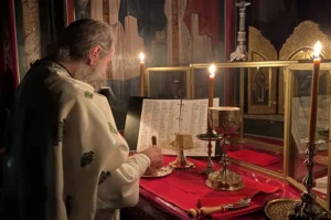 Ὁ πατὴρ Γεράσιμος ἀπὸ τὸ πρωὶ εἶχε κάνει τὴν Ἁγία Προσκομιδή, μνημονεύοντας ὅπως πάντα χιλιάδες ὀνόματα, συμπεριλαμβανομένου καὶ τοῦ ὀνόματος τοῦ ἐκλιπόντος 23χρονου νεαροῦ. Κατὰ τὴν διάρκεια τοῦ Ὄρθρου, ὁ πατὴρ Γεράσιμος κάποια στιγμὴ βλέπει ἕνα νεαρὸ παλικάρι νὰ περιμένει σιωπηρὰ καὶ ὑπομονετικὰ γιὰ νὰ τοῦ μιλήσει.