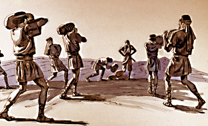 Έχουμε ήδη σημειώσει ότι αυτή η νικηφόρα πορεία του λαού του Θεού, η οποία ξεκίνησε με την πτώση της Ιεριχώ (της Βαβυλώνας εκείνης της εποχής) και τελείωσε με την κατάκτηση ολόκληρης της Γης της Επαγγελίας, χαρακτηρίστηκε (σε δύο κεφάλαια!) από ορισμένες παγίδες. Με εντολή του Κυρίου Θεού, ο λαός τράβηξε 12 μεγάλες πέτρες από το ποτάμι και τις στοίβαξε μεταξύ τους για να σχηματίσουν μια ενιαία, κολοσσιαία πέτρα.