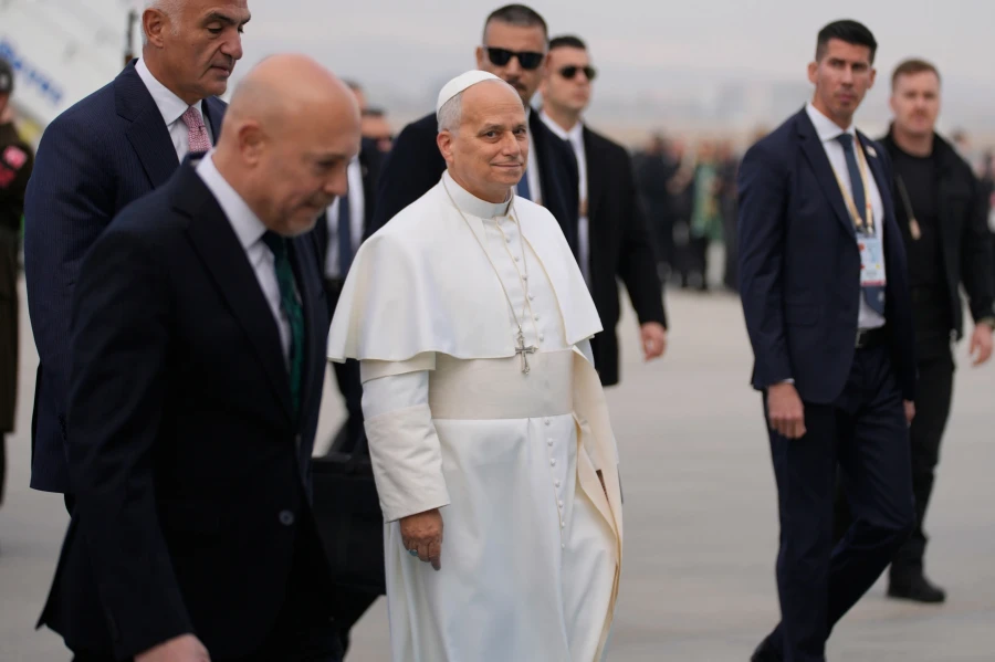 Ο πάπας Λέων XIV έφτασε στο αεροδρόμιο Εσένμπογα της Άγκυρας στις 12:23 το μεσημέρι όπου τον υποδέχτηκε ο Τούρκος υπουργός Πολιτισμού και Τουρισμού, Μεχμέτ Νουρί Έρσοϊ.