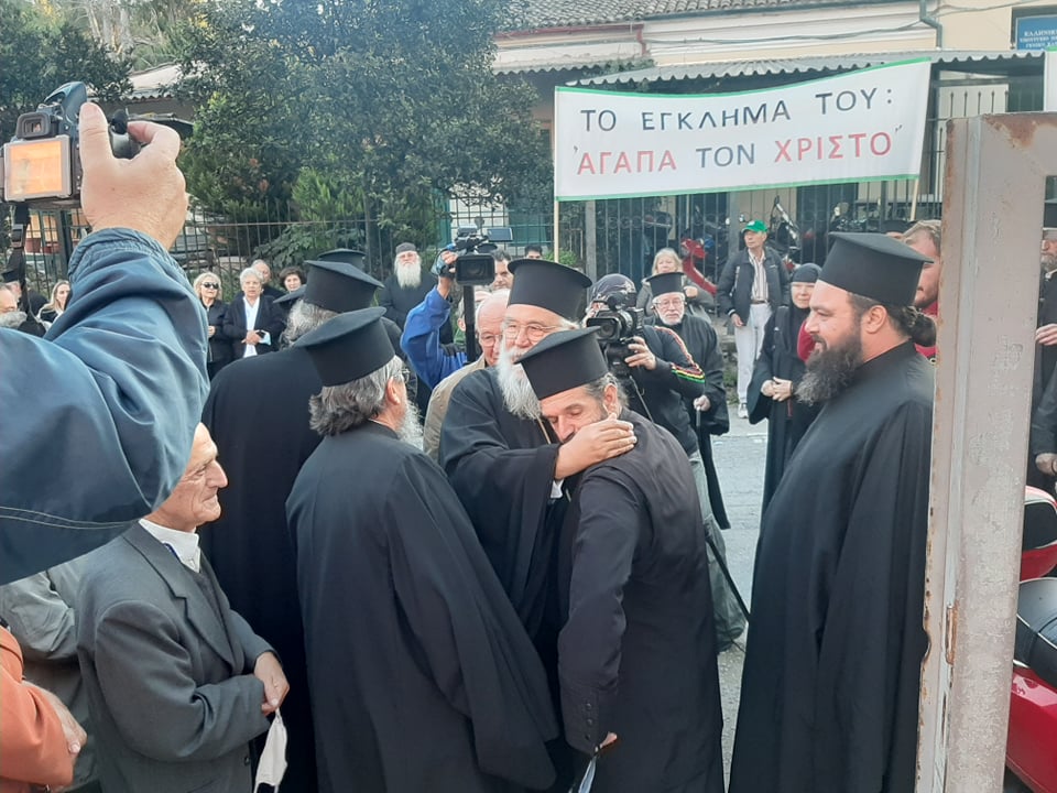 Ζητώντας τις προσευχές όλων για την καλή έκβαση της δίκης του, ο Σεβασμιώτατος ευχαρίστησε χθες τους πιστούς για την αγάπη τους και τόνισε: «Κατηγορούμαστε για το έγκλημα ότι κοινωνήσαμε πιστούς, για το ότι λιτανεύσαμε τον Άγιό μας, για το ότι σεβαστήκαμε την φωνή της συνειδήσεώς μας και μολονότι δεν θέσαμε σε κίνδυνο την δημόσια υγεία, κάναμε το ύψιστο καθήκον μας έναντι του Θεού, της Εκκλησίας και του λαού μας. Πειθαρχούμε στα κελεύσματα του Θεού. Αισθανόμαστε θλίψη διότι υπάρχει ένα γενικότερο κλίμα φόβου, υποταγής, κατάργησης της ελευθερίας» τόνισε και πρόσθεσε μεταξύ άλλων: «Δικαζόμαστε για την πίστη μας στον Χριστό. Στηριζόμαστε στην αγάπη του λαού μας! Ζητώ τις προσευχές σας είστε η παρηγοριά το καύχημά μας οι ανθρώπινοι νόμοι δεν συνάδουν με τους ανθρώπους του Θεού»