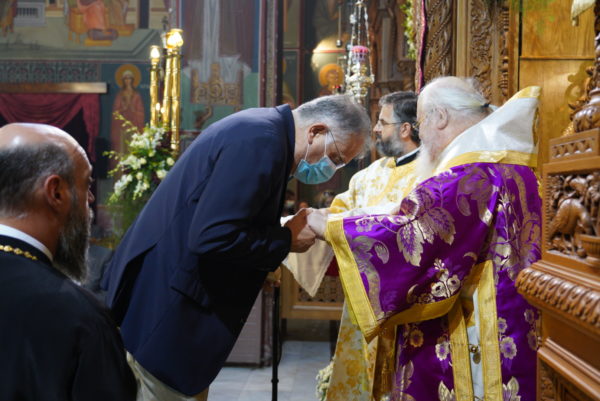 Ευχαρίστησε επίσης για την παρουσία του τον Βουλευτή Ν.Τομέα Β’ Αθηνών κ. Γιάννη Καλλιάνο και του προσέφερε αντίγραφο της Ι. Εικόνος της Παναγίας της Παρηγορητρίας .