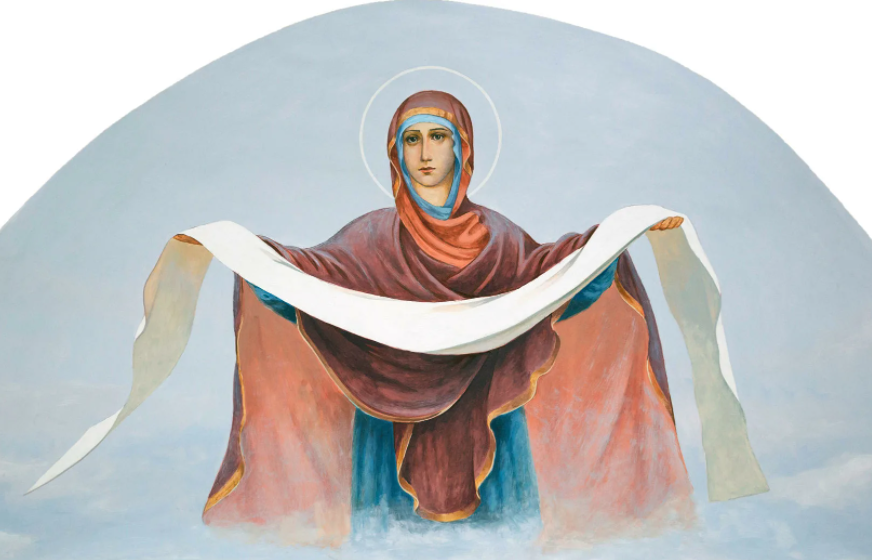 «Η Προστασία της Υπεραγίας Θεοτόκου», απάντησε η μοναχή. Μετά τον Εσπερινό, ο μοναχός μίλησε στις αδελφές για το όραμά του, που προφανώς είχε να κάνει με την Προστασία της Υπεραγίας Θεοτόκου, σκεπάζοντας όλο τον κόσμο σαν σύννεφο χάριτος.