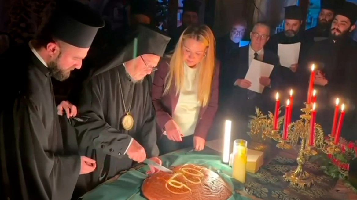 «Κακός οιωνός» σχολίασε ο Οικουμενικός Πατριάρχης πριν να ολοκληρώσει την κοπή της πίτας.