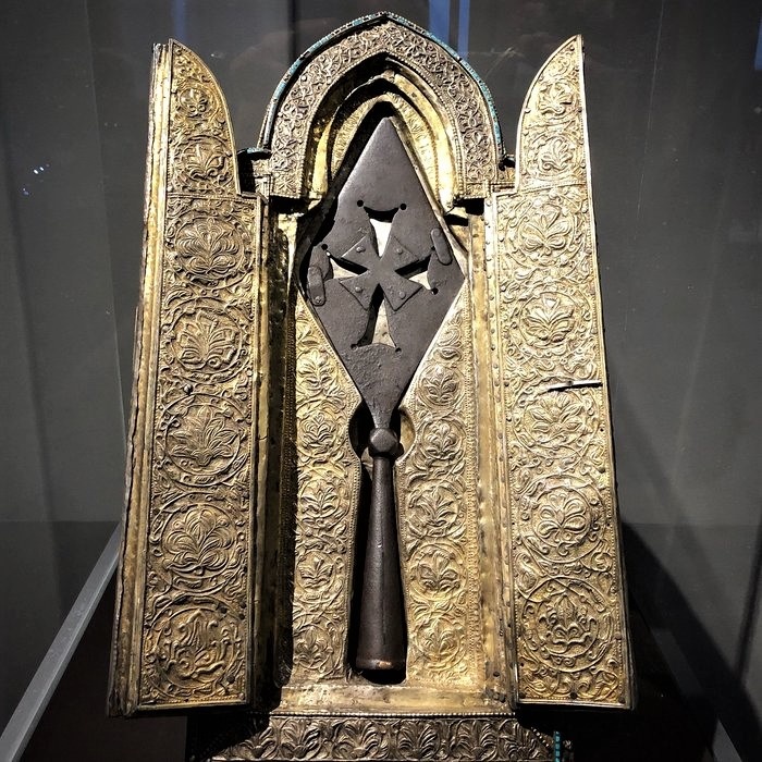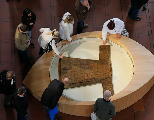 Και τέλος, ένα άλλο διάσημο και πολύτιμο κειμήλιο. Σύμφωνα με τον θρύλο, η Σινδόνη είναι το ύφασμα στο οποίο τυλίχτηκε το σώμα του Χριστού μετά τη σταύρωση και πάνω στο οποίο αργότερα εμφανίστηκε ως εκ θαύματος το πρόσωπό του.