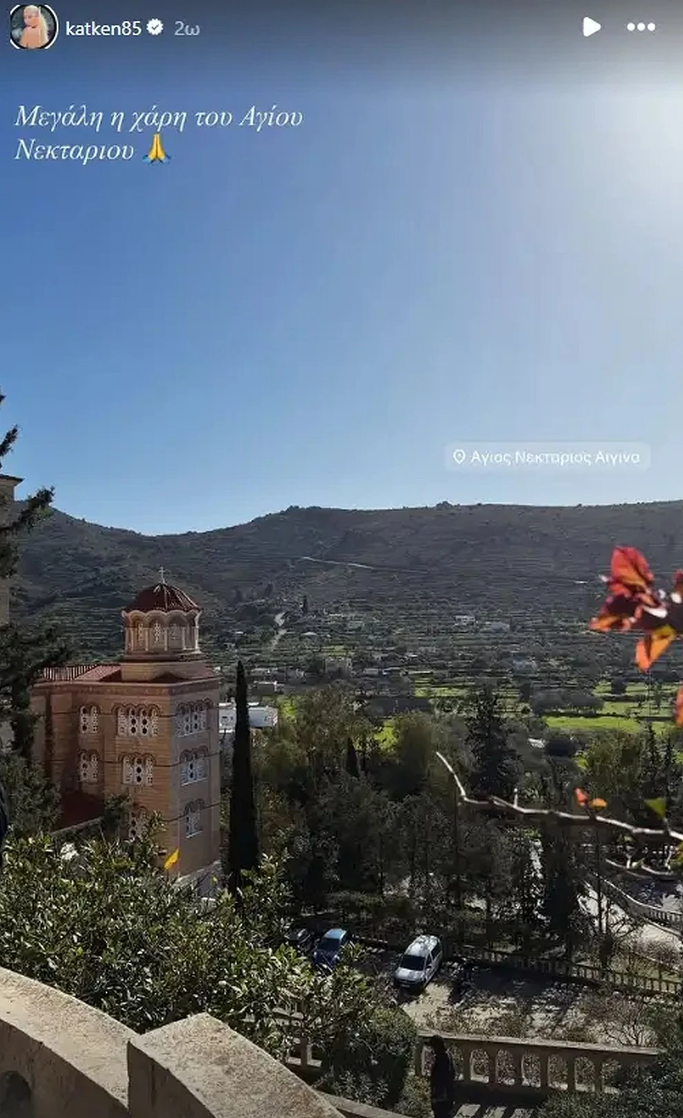 H παρουσιάστρια πρόσφατα είχε αποκαλύψει μέσω της εκπομπής «Super Κατερίνα» ότι ήθελε να ταξιδέψει στην Αίγινα για να προσκυνήσει στον Άγιο Νεκτάριο, πριν γεννήσει, καθώς τον έχει δει και στον ύπνο της.